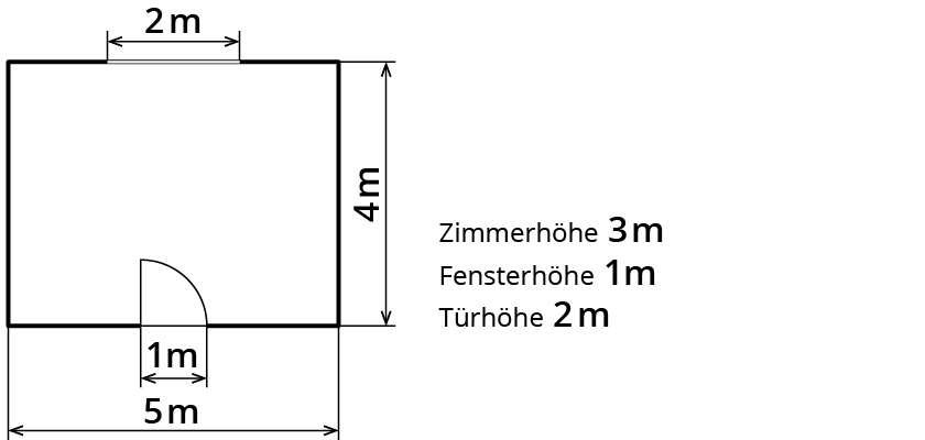 A$$ = $$Breite$$*$$Zimmerhöhe$$ = $$4 m$$*$$3 m$$ = $$12 m²