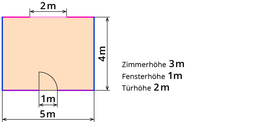 A$$ = $$Länge$$*$$Zimmerhöhe$$ – $$Türfläche