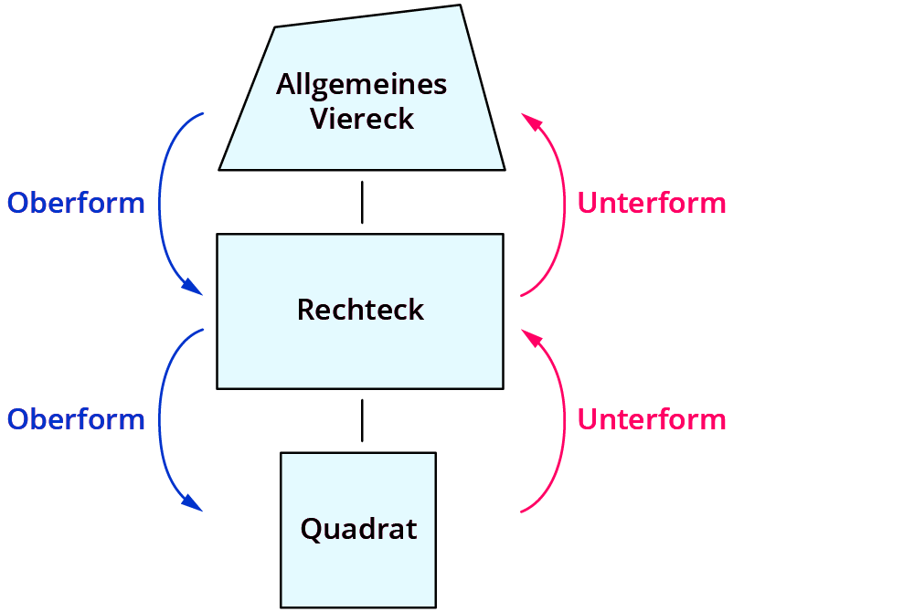 Das Rechteck ist eine Oberform von einem Quadrat.
