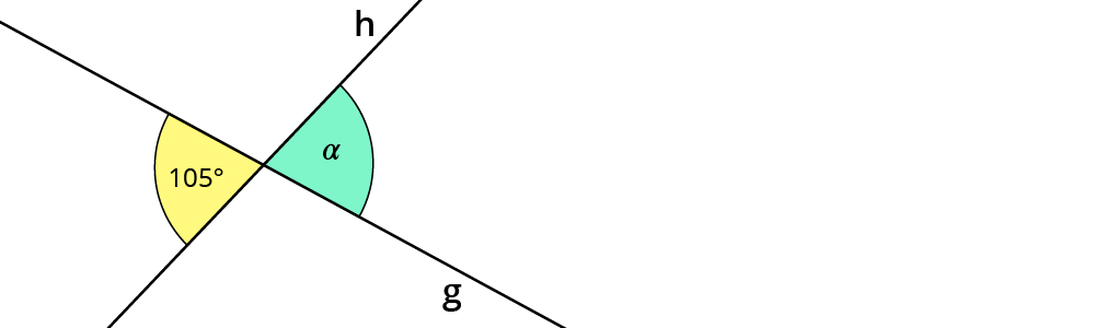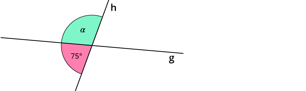 Da $$alpha$$ und der 75° Winkel Nebenwinkel sind, weißt du, dass die beiden Winkel zusammen 180° groß sind.