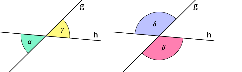 Je zwei „gegenüberliegende“ Winkel an einer solchen Geradenkreuzung heißen Scheitelwinkel.
