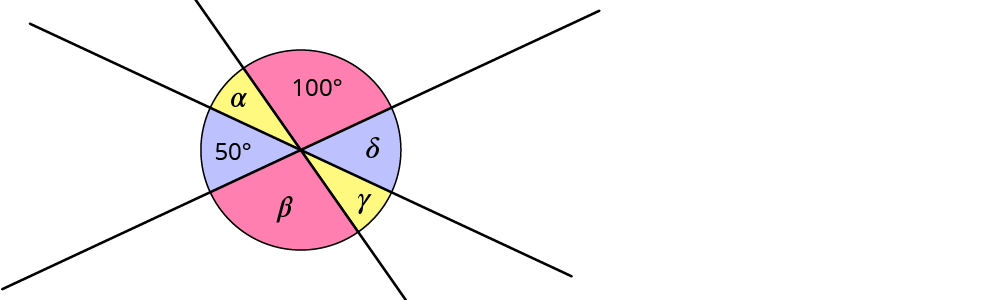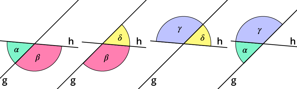 $$alpha$$ und $$gamma$$ liegen sich gegenüber $$beta$$ und $$delta$$ liegen sich gegenüber