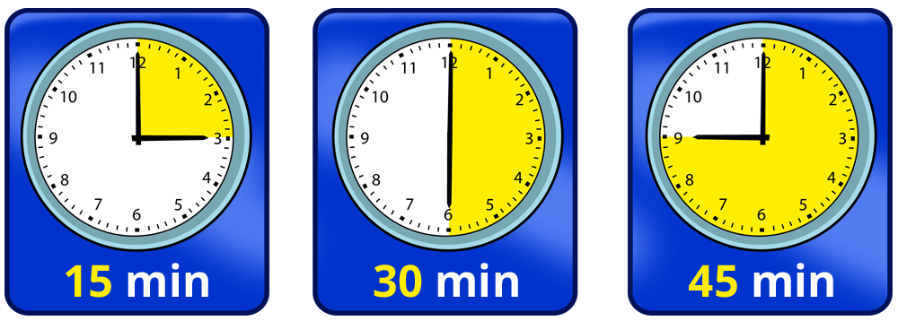 Häufig sprichst du von einer Viertel- oder einer halben Stunde. Wie viele Minuten sind das?