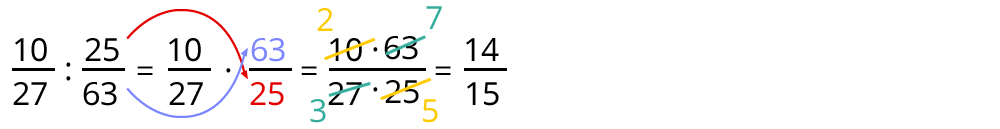 Auch beim $$:$$ Rechnen kannst du in Aufgaben kürzen, nachdem du sie mit dem Kehrwert aufgeschrieben hast.