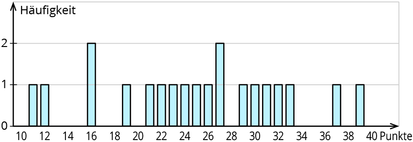 Mathelehrer Wurzel hat in der 8A (20 Schüler) eine Arbeit schreiben lassen. Es gab maximal 40 Punkte. Das sind die erreichten Punktzahlen:
