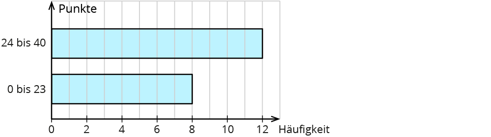 Schülerin Ceyhan hat in der Arbeit 24 Punkte erreicht, also eine Drei geschrieben. Sie teilt die Daten in zwei Klassen ein
