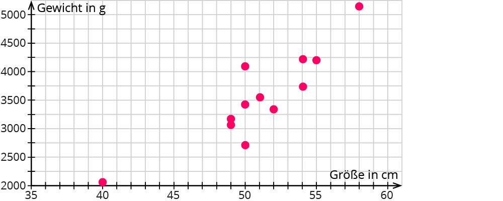 In diesem Streudiagramm siehst du Körpergröße und Körpergewicht von Neugeborenen.