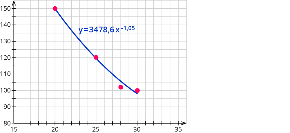 Wie du sehen kannst, würde eine Gerade den Verlauf nicht mehr adäquat beschreiben. In diesem Fall ist eine Hyperbel als Ausgleichsgraph genauer.