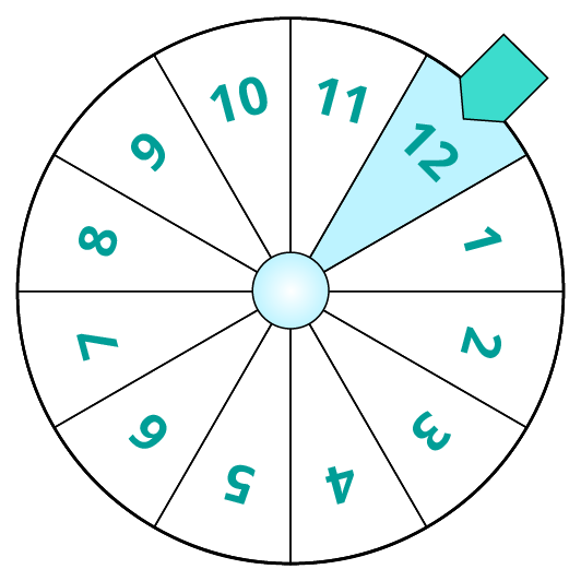 Beispiel: Um zu gewinnen musst du eine 12 am Glücksrad drehen. Du drehst aber 3, 4, 7, 8 und 10.