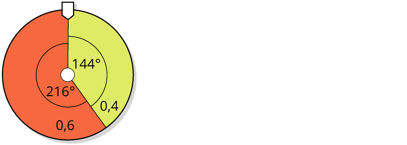 Du siehst die Wahrscheinlichkeit für die Farben im Glücksrad. Wenn Tom und Ida etwa 100mal drehen, wird Tom 40mal 50 Cent, also 2000 Cent oder 20 € von Ida erwarten. Ida hingegen wird von Tom 60mal 20 Cent, also 1200 Cent oder 12 € erwarten können.