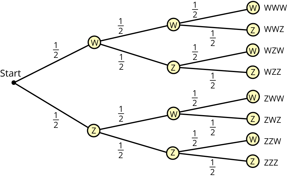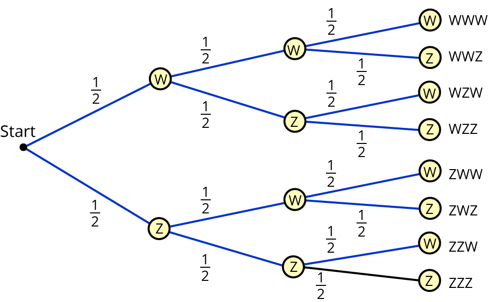 p(E)=p(WWW)+p(WWZ)+p(WZW)+p(WZZ)+p(ZWW)+p(ZWZ)+p(ZZW)