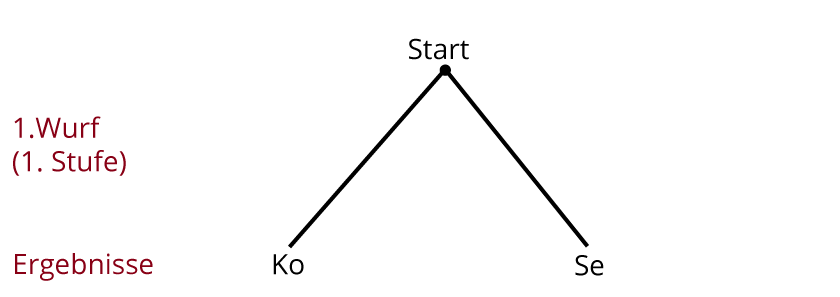 Die Ergebnismenge lautet $$Omega$$ = {KoKo; KoSe; SeKo; SeSe} mit |$$Omega$$| = 4 als Anzahl der Ergebnisse.