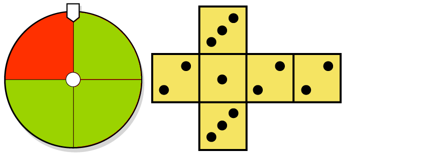 Beim Glücksrad sind die Flächen rot und grün eingefärbt - Würfeln
