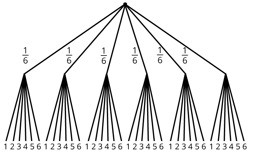 Bei vielen Zufallsexperimenten kannst du dir mit diesen Bildern einen Überblick über die Ergebnisse machen. Das sind die Baumdiagramme.