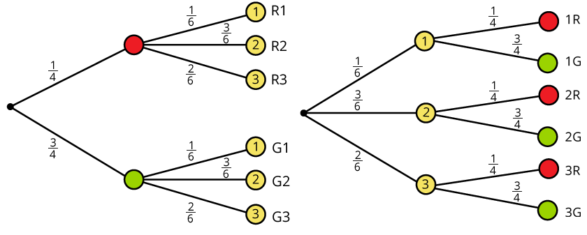 Die Baumdiagramme zeigen dir die möglichen Ergebnisse.