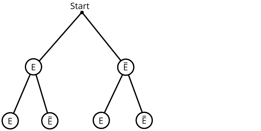 Es gibt Zufallsexperimente, bei denen nur interessiert, ob ein Ereignis $$E$$ eintritt oder nicht. Wenn $$E$$ nicht eintritt, so tritt das Gegenereignis $$bar E$$ ein. Beispiele: