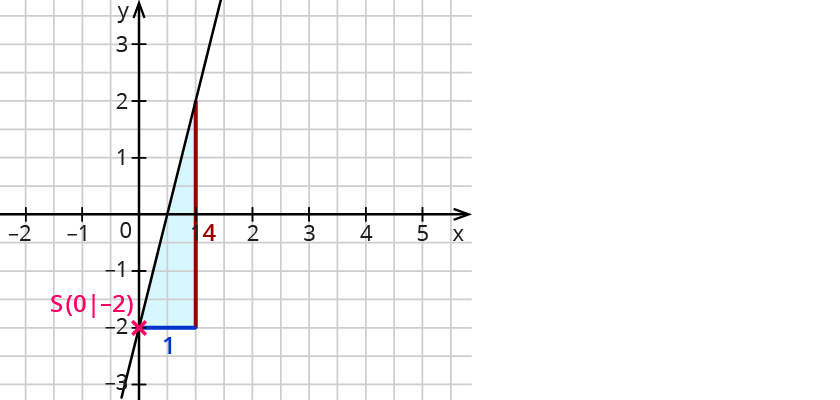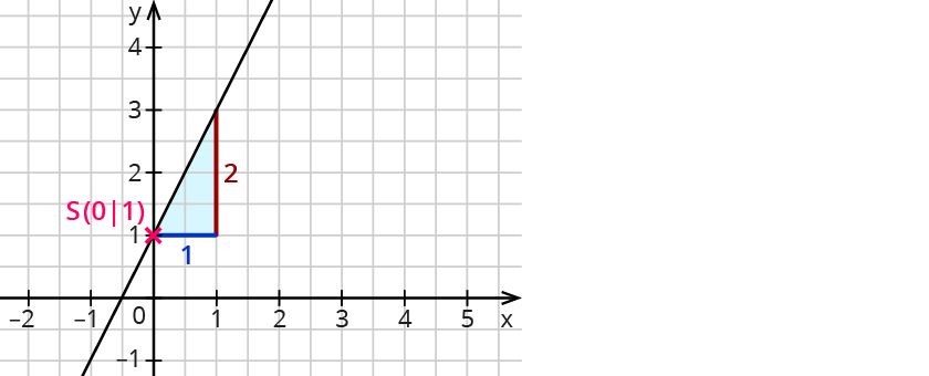 Der Schnittpunkt mit der $$y$$-Achse ist $$S(0|b)$$. Die Steigung $$m$$ erhältst du über ein Steigungsdreieck.