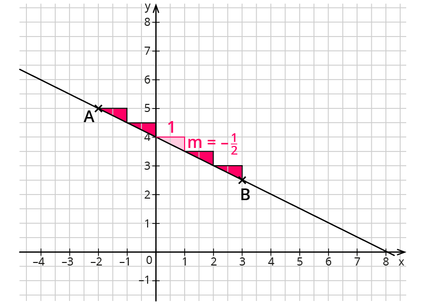 2. Schritt: Gehe von diesem Punkt aus um 2 nach rechts und um 1 nach oben. Damit ist $$m=1/2=0,5$$.