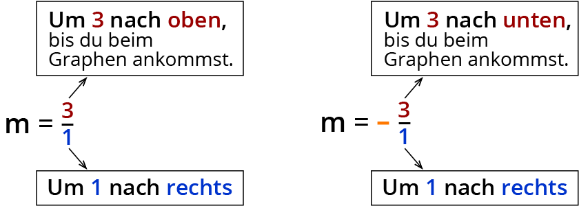 Gehe 1 nach rechts und 4 nach oben. Damit ist $$m=4/1 = 4$$.