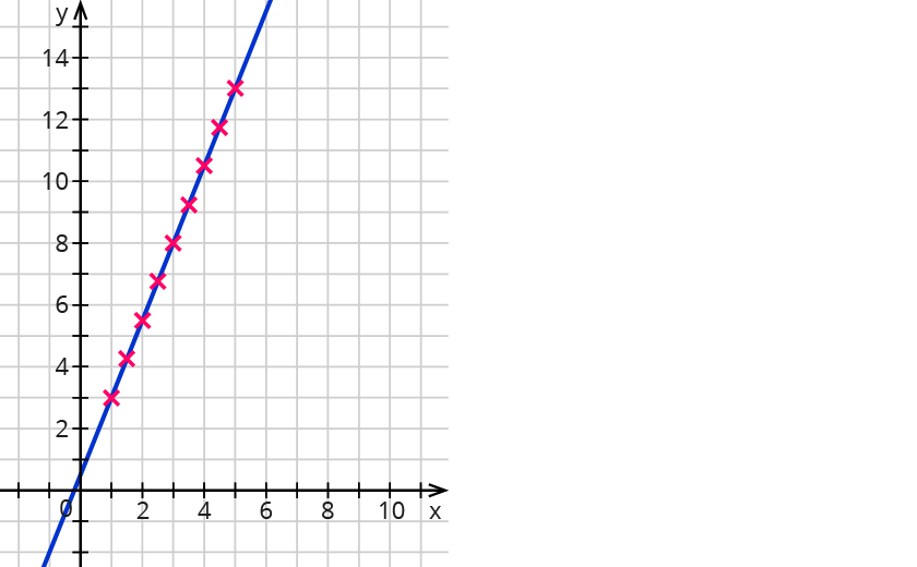 Anna schreibt sich die Funktionsgleichung $$y=f(x) =2,5*x+0,5$$ auf und berechnet verschiedene Wertepaare.