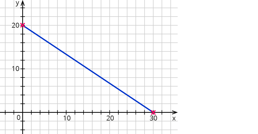 $$h(30)=–2/3*30+20=–20+20=0$$ $$rarr$$ Punkt $$(30|0)$$