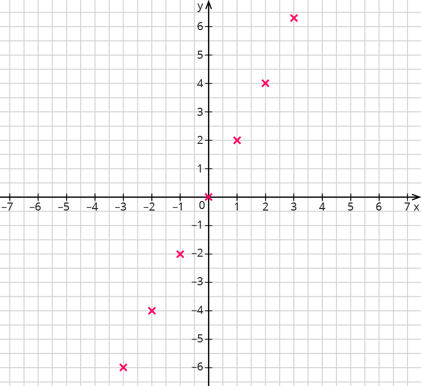 Wähle hier $$- 3, - 2, - 1, 0, 1, 2, 3$$ als x-Werte.