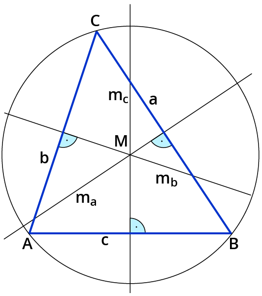 - Der Schnittpunkt der 3 Mittelsenkrechten ist der Mittelpunkt des Umkreises.