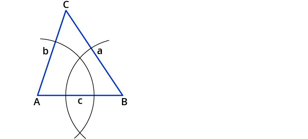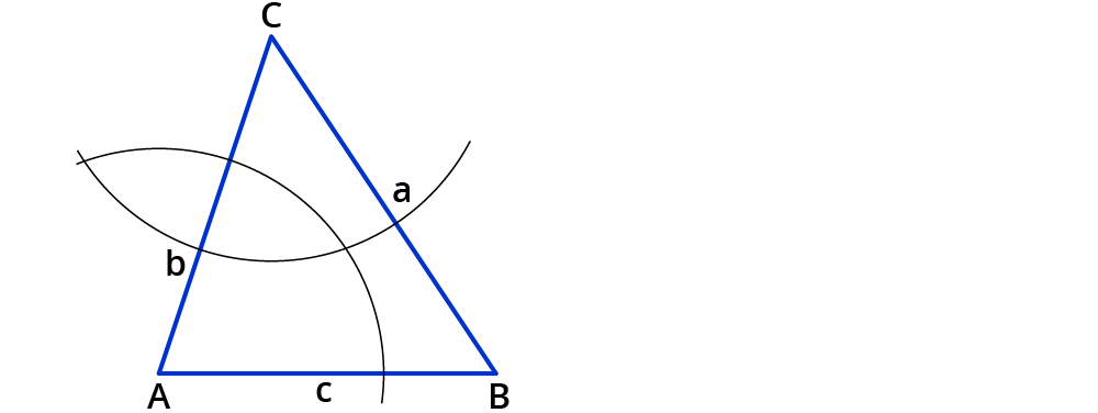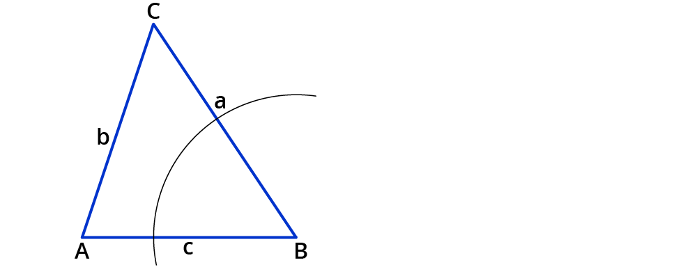 Zeichne einen halben Kreisbogen mit einer Zirkelspanne, die größer als die Hälfte der Länge der Seite c ist um B.