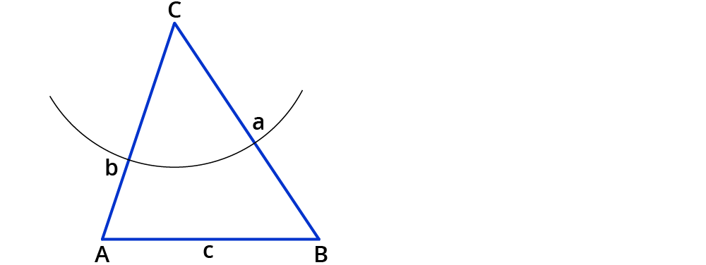 Zeichne einen halben Kreisbogen mit einer Zirkelspanne, die größer als die Hälfte der Länge der Seite b ist um C.