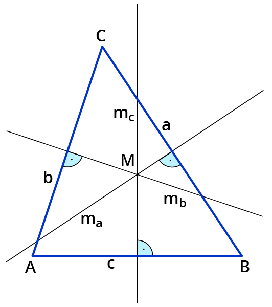 Der Punkt M ist der Mittelpunkt des Umkreises eines Dreiecks.