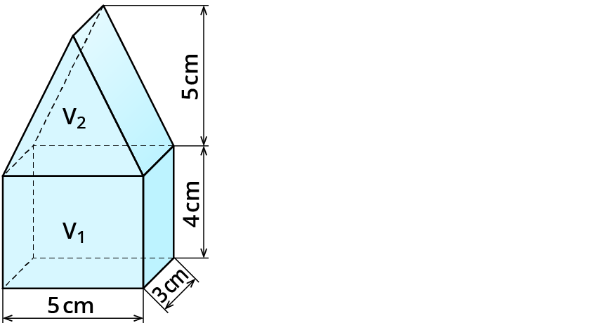 $$V_2 = 1/2 * 5cm * 5cm * 3cm$$