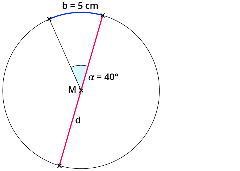 Sei der Kreissektor durch $$alpha = 40°$$ gegeben. Der Durchmesser des Kreises ist $$d = 8$$ $$cm$$.