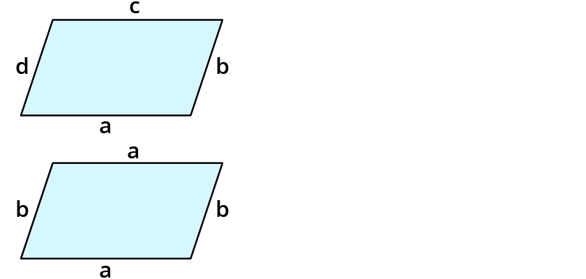 Auch hier gilt wie beim Rechteck: Wenn zwei oder mehr Seiten genau gleich lang sind, verwendest du denselben Buchstaben.