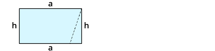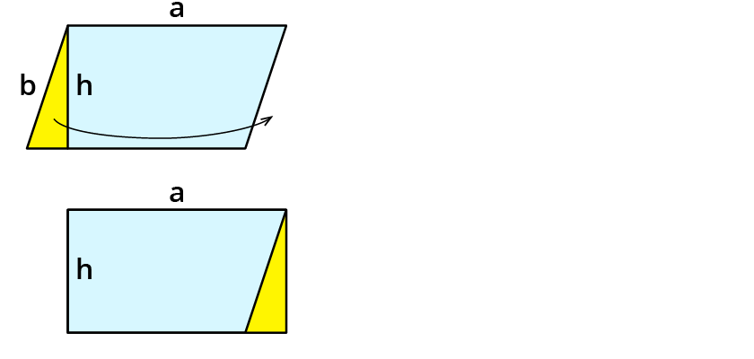 Die neue Seite ist die Höhe h. Sie ist die Höhe des Rechtecks und des Parallelogramms.
