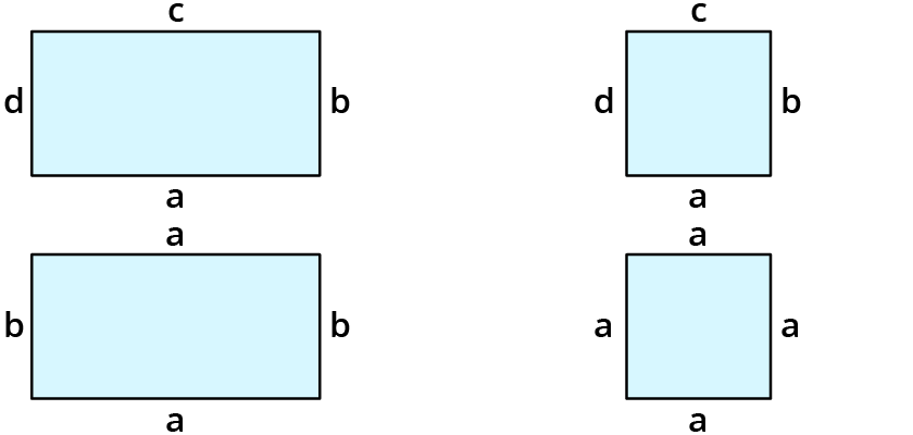 Weil bei Rechtecken und Quadraten nicht alle Seiten verschieden lang sind, kannst du die Formel vereinfachen: