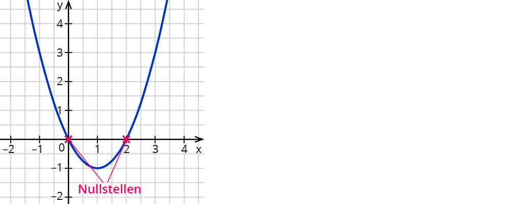 Überall dort, wo für die Variable $$x$$ der Term $$x^2 - 2x$$ den Wert $$0$$ annimmt, liegt eine Nullstelle vor.