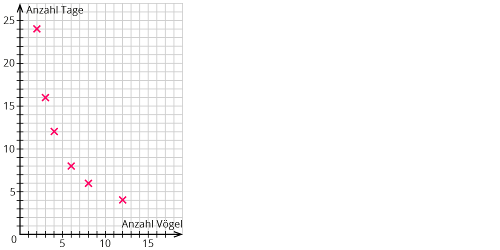 So stellst du die Zuordnung Anzahl der Vögel $$->$$ Anzahl der Tage in einem Koordinatensystem dar: