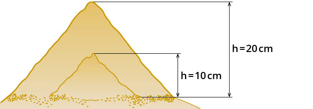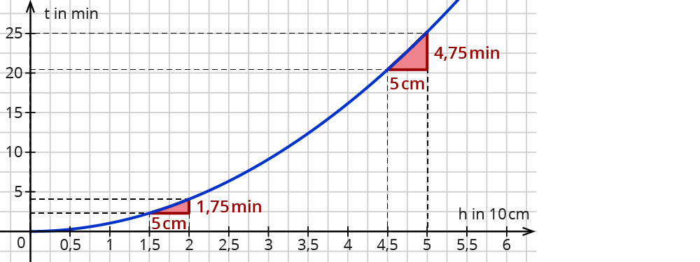 Paul und Tam sind an der Ostsee angekommen und liegen am Strand. Paul baut am Strand eine Burg. Für die ersten 10 cm Höhe benötigt Paul 1 min. Um die Burg auf 20 cm Höhe zu bekommen, benötigt er insgesamt 4 min.