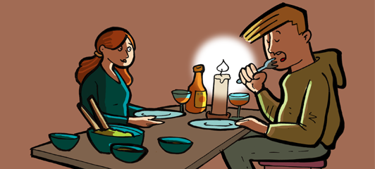 Tam und Paul sitzen beim letzten Abendessen in ihrem Urlaub bei Kerzenschein am Tisch. Als sie ein letztes mal die Stille genießen, fällt Tam auf, dass die Kerze, auf die sie blickt, gleichmäßig kürzer wird. Sie ist so vertieft darin, dass sie auf die Serviette folgende Tabelle schreibt: