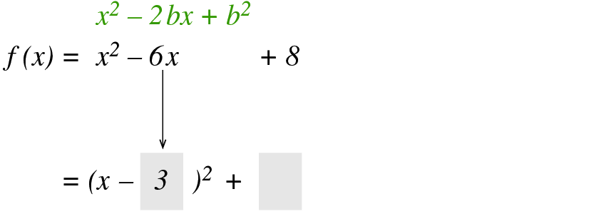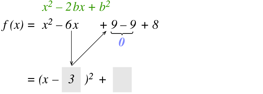 $$f (x) = x^2 -6x +8$$ ist die gleiche Funktion wie $$f (x) = (x-3)^2 -1$$.