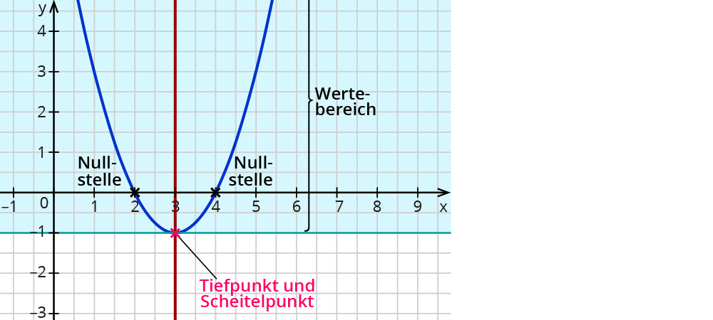 Der Tiefpunkt und Scheitelpunkt ist $$(3|-1)$$.