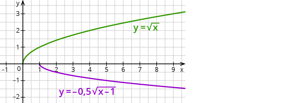 • Funktionsgleichung: $$y = -0,5 sqrt(x - 1)$$
