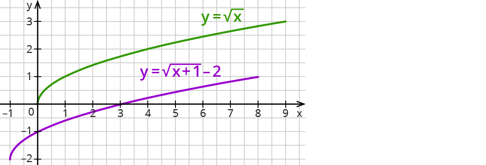 Durch Ergänzung des Wurzelterms der Wurzelfunktion lassen sich weitere Funktionen bilden. Vergleiche die Wurzelfunktion mit der verschobenen Wurzelfunktion.