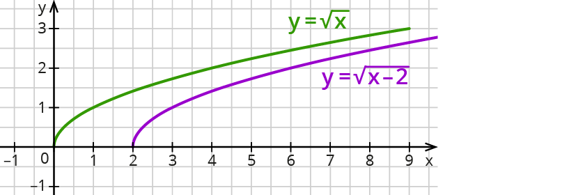 • Funktionsgleichung: $$y = sqrt(x - 2) $$
