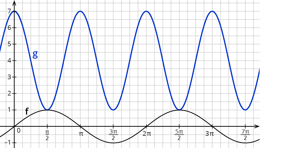 - Die Kurve ist um 4 in y-Richtung verschoben. Die Kurve schwankt um den Mittelwert 4 statt um die 0.