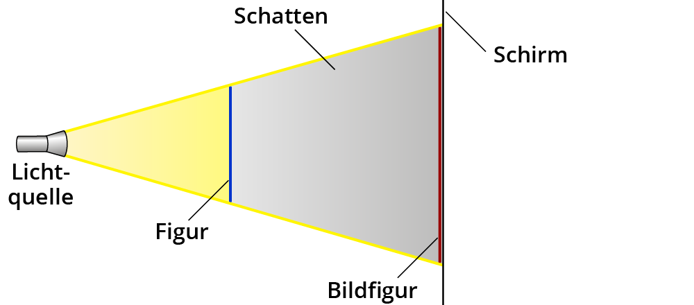 Physiker würden sagen: Eine punktförmige Lichtquelle erzeugt von einem Gegenstand auf einem Schirm einen scharf begrenzten Schatten.