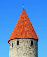 Beispiel: Diese Turmspitze ist aus einem Zylinder und einem Kegel zusammengesetzt.
