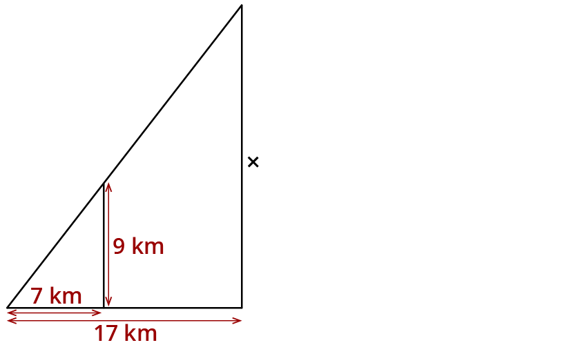 $$x=(17*9)/7 approx 21,857$$ $$km$$
