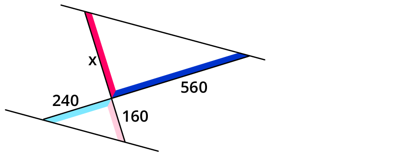 Du wendest den 1. Strahlensatz an, um erst mal die Strecke $$x$$ zu bekommen.