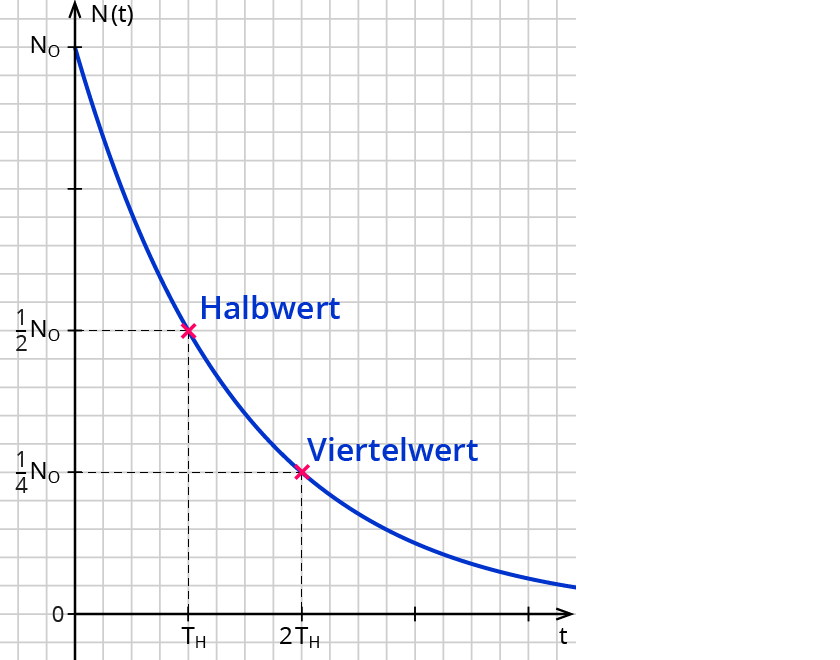 Die Halbwertszeit ist die Zeitspanne, nach der ein (radioaktiver) Stoff die Hälfte des anfänglichen Werts angenommen hat.